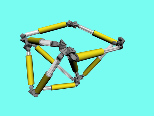 То-есть, повторюсь, двенадцать модулей могут быть соединены одновременно в одной точке, и любой модуль может покинуть группу, переориентироваться и присоединиться к другой группе/узлу (если там есть свободные места), при этом прочность соединения покинутой группы не уменьшается. Таким способом модули перемещаются внутри мегаструктуры, состоящей из этих самых модулей, придавая ей нужную форму и совершая полезную работу. Немного путано, но надеюсь понятно. Образное сравнение – шимпанзе перемещается сквозь джунгли, цепляясь за ветки то одной рукой, то другой (только сами джунгли в данном случае состоят из таких же шимпанзе. Сюрреализм какой-то получился…).