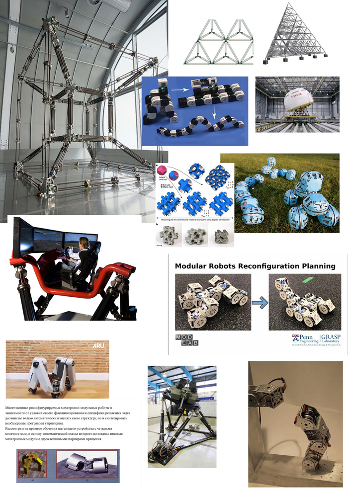 Когда я писал данный текст, я разумеется в очередной раз поискал в интернете аналогичные конструкции. По запросу «реконфигурируемые роботы» выходит огромное количество разработок, исследований и даже диссертация. На википедии длинный список серьёзных работ, рассматривающих данную тематику. Меня в этом списке нет, мой патент слишком поверхностно, по-детски затрагивает такую глубокую и многогранную тему. И почему-то, несмотря на такой мощный пласт информации я пока не вижу вокруг ни одного воплощения унироботоподобных механизмов. Их нет не только в быту, но и в космосе, и в военной промышленности, хотя самые передовые разработки в первую очередь появляются именно в военке. Есть какие-то студенческие разработки, игрушки, опытные образцы энтузиастов, но нет готовых завершённых утилитарных проектов, выпускающихся серийно. Вот этот когнитивный диссонанс между количеством теории и отсутствием практических воплощений и заставил меня писать этот опус. Возможно, я не исключаю, что я жестоко ошибаюсь и ломлюсь в открытые двери, и всё уже есть где-то. Но, блин, где?!