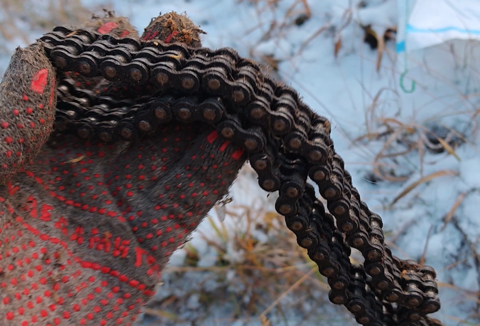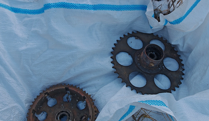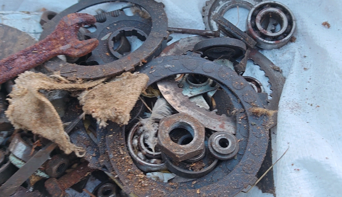 Предполагаю, что когда то у хозяина был мотоцикл, который потом продали. А сумку с запчастями убрали в погреб. Покажу приятелю, который занимается восстановлением техники - мож сгодиться на что. А пока предлагаю поглядеть видео этого, если конечно-же интересно. Просто нажмите - сюда.