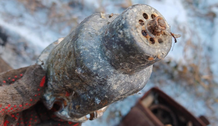 Достал из разрушенного погреба тяжелый советский чемодан с запчастями от мотоцикла