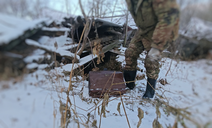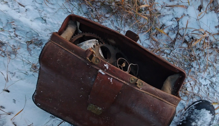 Это оказался довольно увесистый советский портфель, никак не менее 10 кг. Хм... В 90% случаев содержимое типовое. Вот и в этот раз - не сильно удивился:
