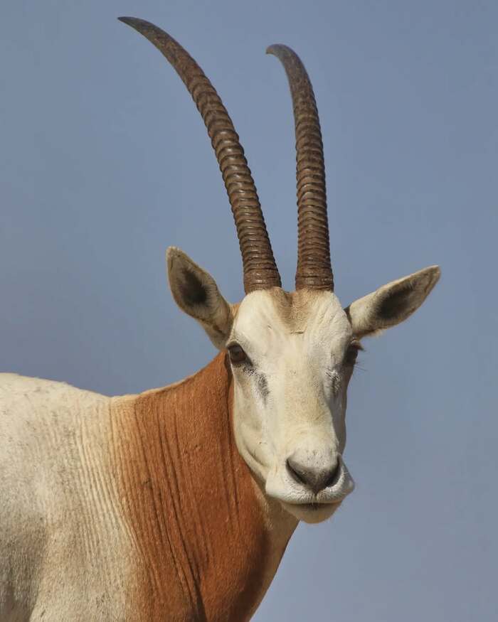 Впечатляющие животные весом до 200 кг и ростом чуть более 1 м в холке, они идеально приспособлены к суровым условиям пустыни. Белая шерсть помогает защититься от жары в пустыне. Большие растопыренные копыта позволяют лучше передвигаться по рыхлому песку. Будем надеяться, что их восстановление в дикой природе продолжится и они будут возвращены в те страны, где когда-то обитали.