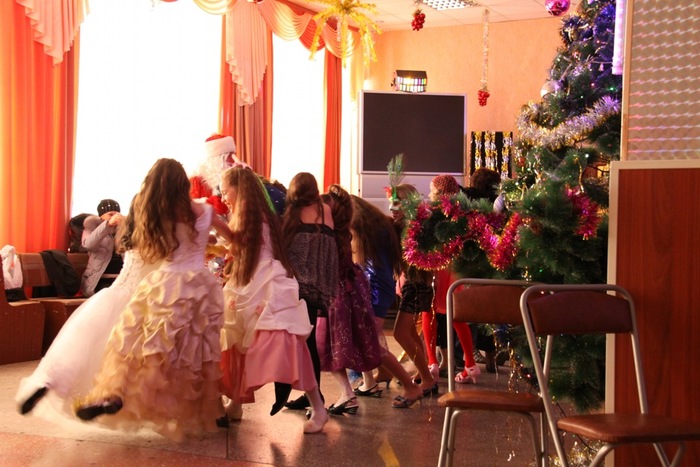 Ну, ещё приколюха — перетягивание каната в бальных платьях. Девочки патцанам продули.
