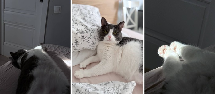 3-летняя кошечка Краюшка начало своей жизни провела не вполне радостно: она жила в большом прайде котиков в переполненной квартире, и ей приходилось все время быть в борьбе за ресурсы... Но черная полоса позади, славную малышку отогрели и откормили в приюте, и она, выбрав для себя семью, начала домашнюю, но теперь уже счастливую и безопасную жизнь!