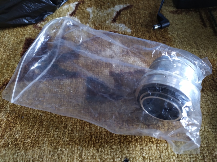 Сегодня решил начать делать станок для оцифровки СФ-пленок - про него тоже пост запилю. Ну так вот, для этой цели достал свой Юпитер-8 с переходным кольцом М39-М42, чтобы присобачить к кольцу М42- EF, которое, в свою очередь, находится в Canon 1100D. Так как задней крышки для него у меня не было, он хранился в зип-пакете (открытом, естественно, чтоб новая жизнь меж линз не завелась).