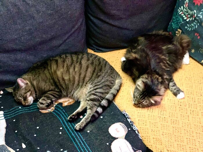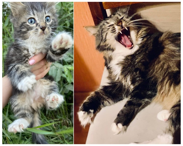 А у нас комбо. Сразу два котика Лёва и Сёма решили протянуть свои удачливые лапки своим пока ещё бездомным собратьям. Оба котика тоже были подобраны на улице малышами. Так что ловим целых две счастливые лапки.