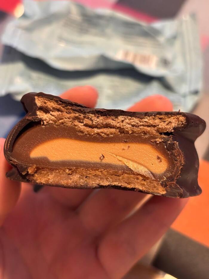 Ну а самый вкусный альфахор мы нашли в магазине патагонского шоколада Rapanui. Это альфахор во вкусном молочном шоколаде, а посередине — на вкус очень натуральный малиновый джем. Получается, что кислинка от малины гасит сладость шоколада — выходит совсем не пересладко, а как надо.