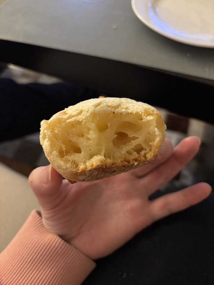 Чипы я первые месяцы недооценивала. Просто фокус был и так на куче новых вещей в новой стране и на адаптацию. А это оказались тягучие булочки с сыром, с кучей сыра, необычной текстуры. Ну как, булочки. Они же без привычной нам муки. Туда идёт куча сыра 2-3 вида и тапиоковая мука. Вот эта мука и даёт тягучесть и упругость. И получаются они не такими калорийными, как мучная выпечка.