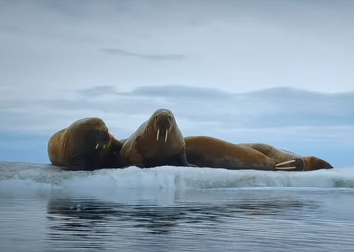Теперь пришло время понаблюдать за моржами. Они особенно страдают от изменения климата: льда, на которых они формируют лежбища для родов и спаривания, становится всё меньше.