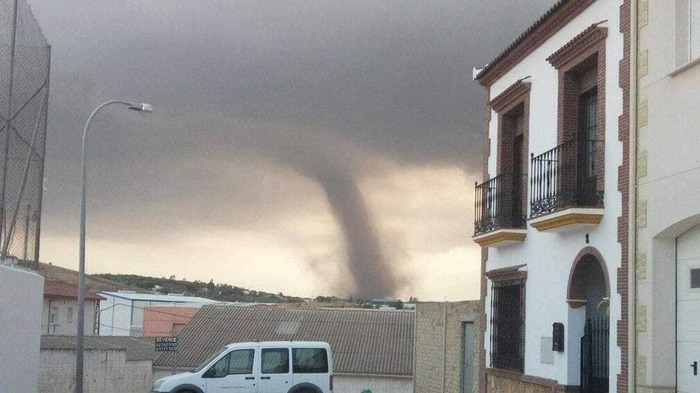 Минувшим вечером в Испании, через деревню Campillos в 80 км от Малаги (как раз недалеко от дома, где лесной пожар сейчас) прошло 2 торнадо.