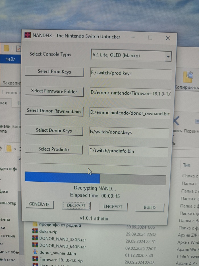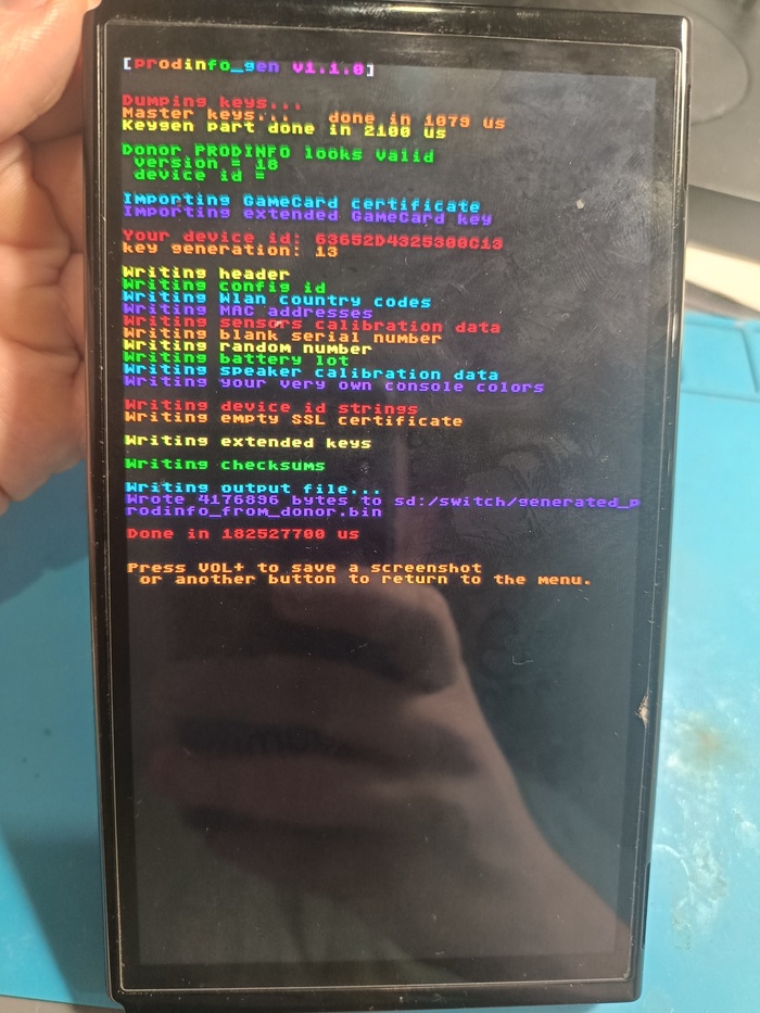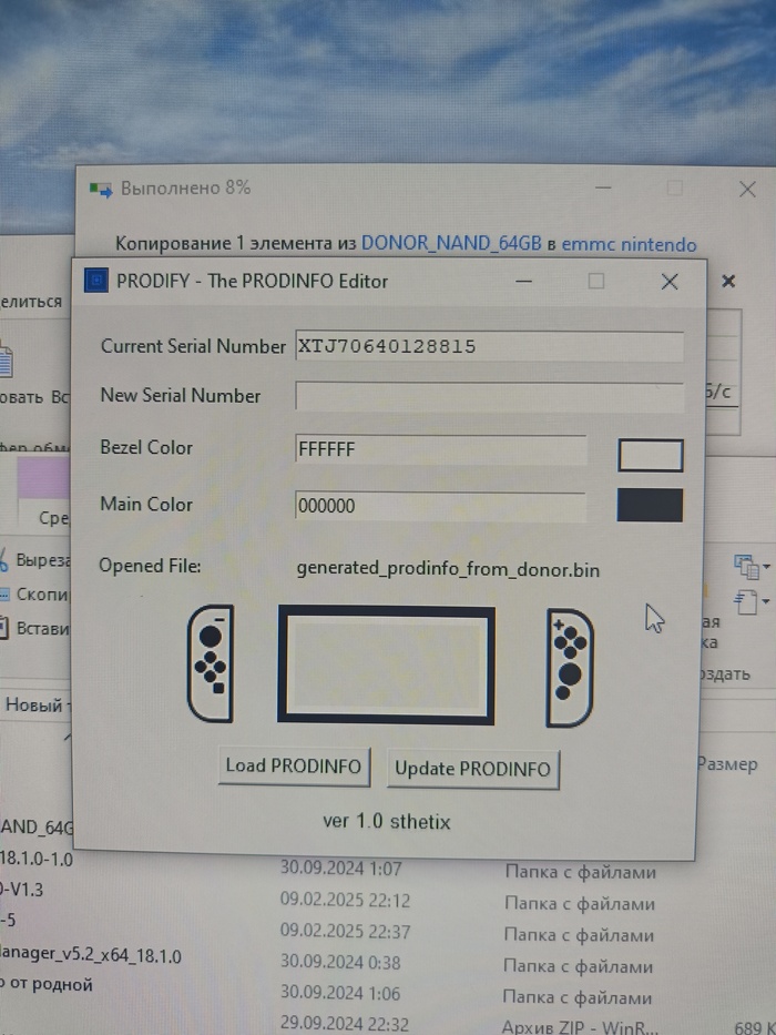 После сборки дампа с сгенерированным под нашу консоль разделом prod info, записываем дамп и загрузчики в новую emmc.