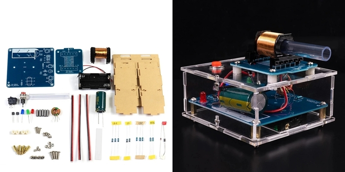 Электронный комплект для самостоятельной сборки и пайки электромагнитной пушки. стоит около 900 руб. Ссылка на него
