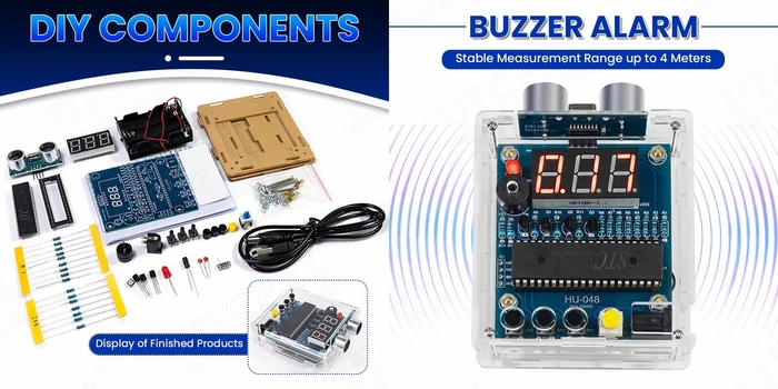 Новый набор DIY из AliExpress для сборки ультразвукового дальномера на 4 метра. Стоит комплект радиодеталей около 900 руб. Ссылка на него