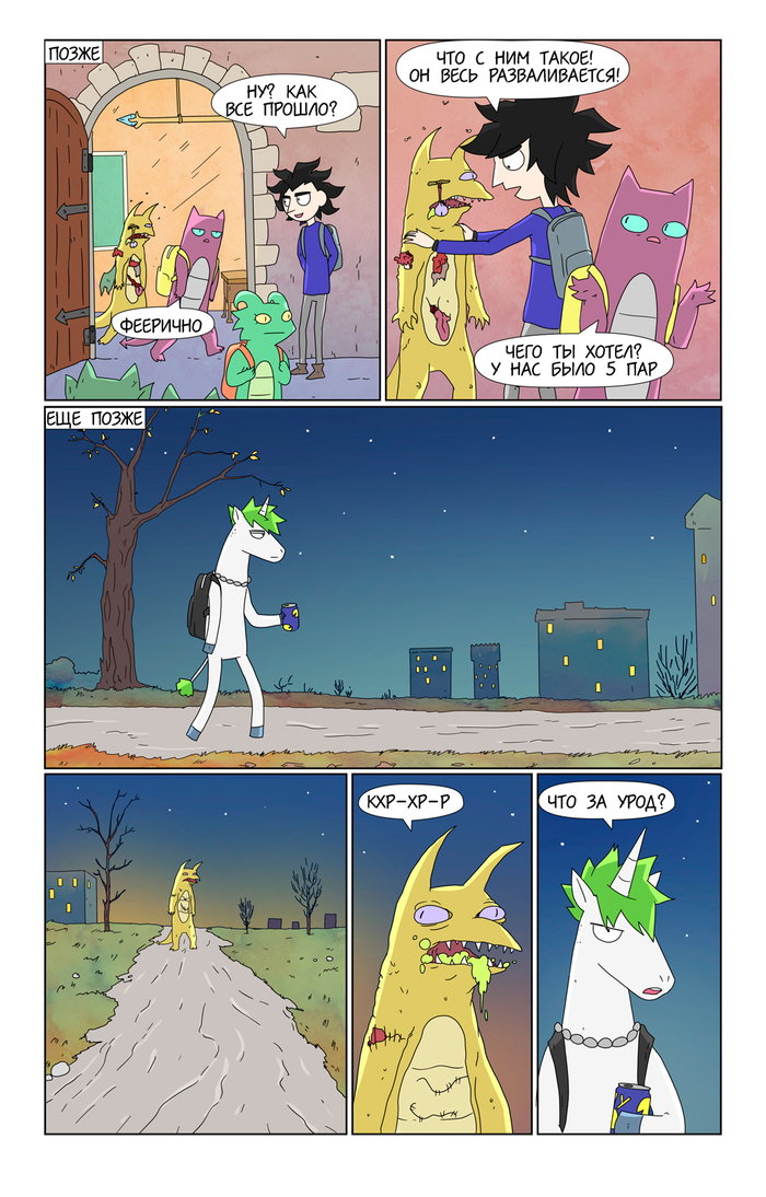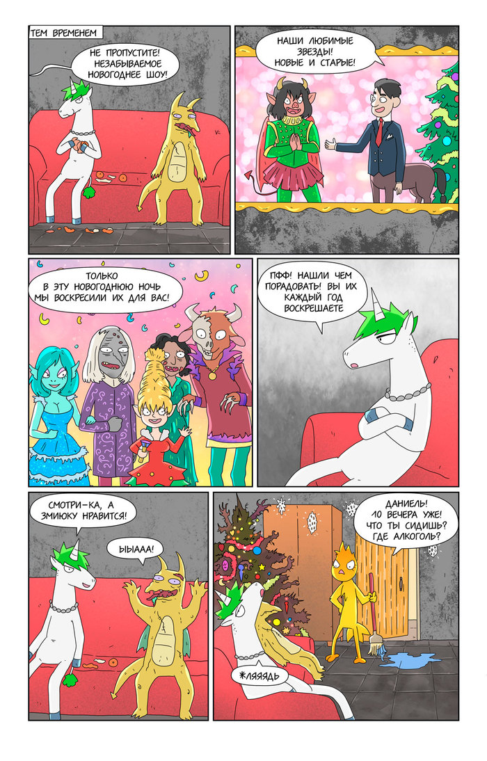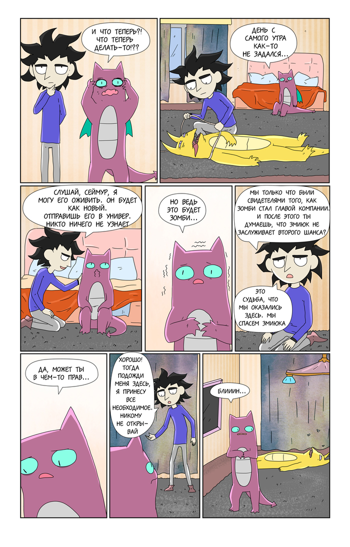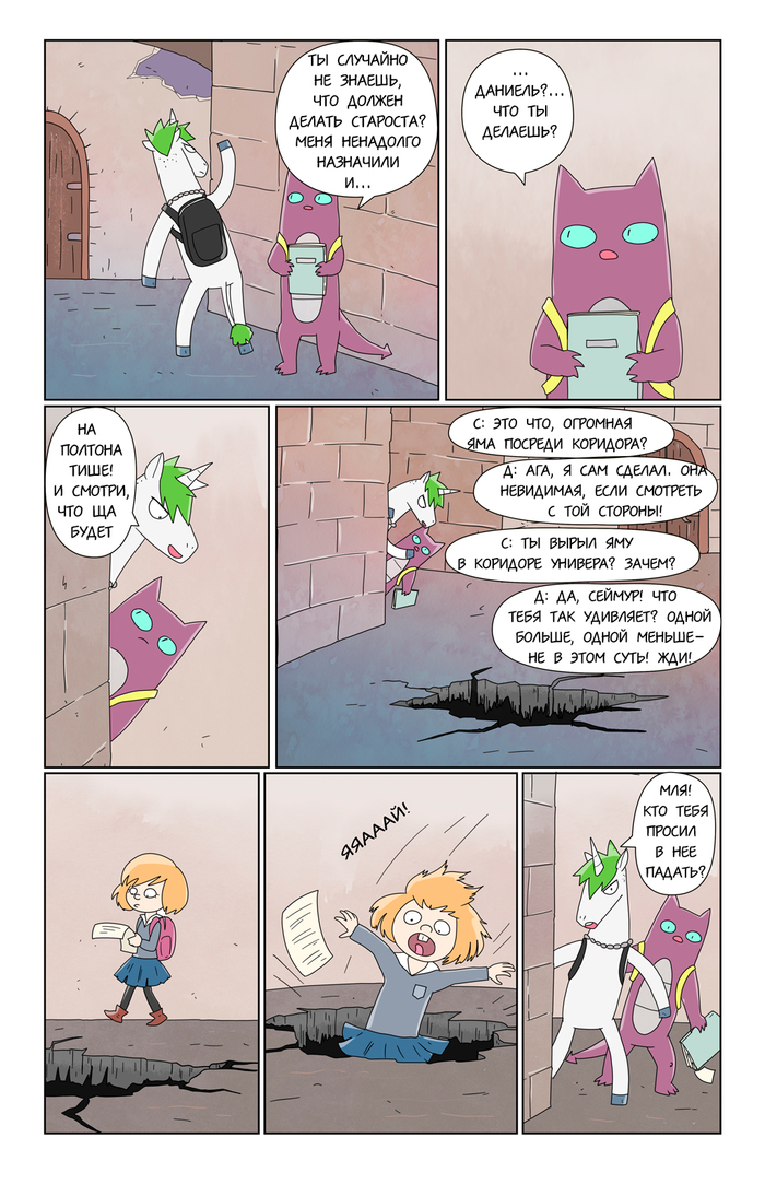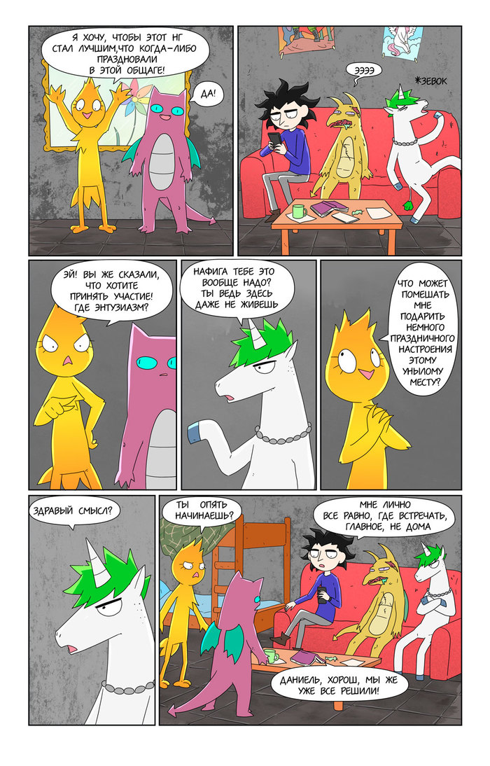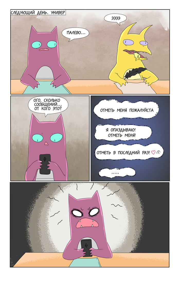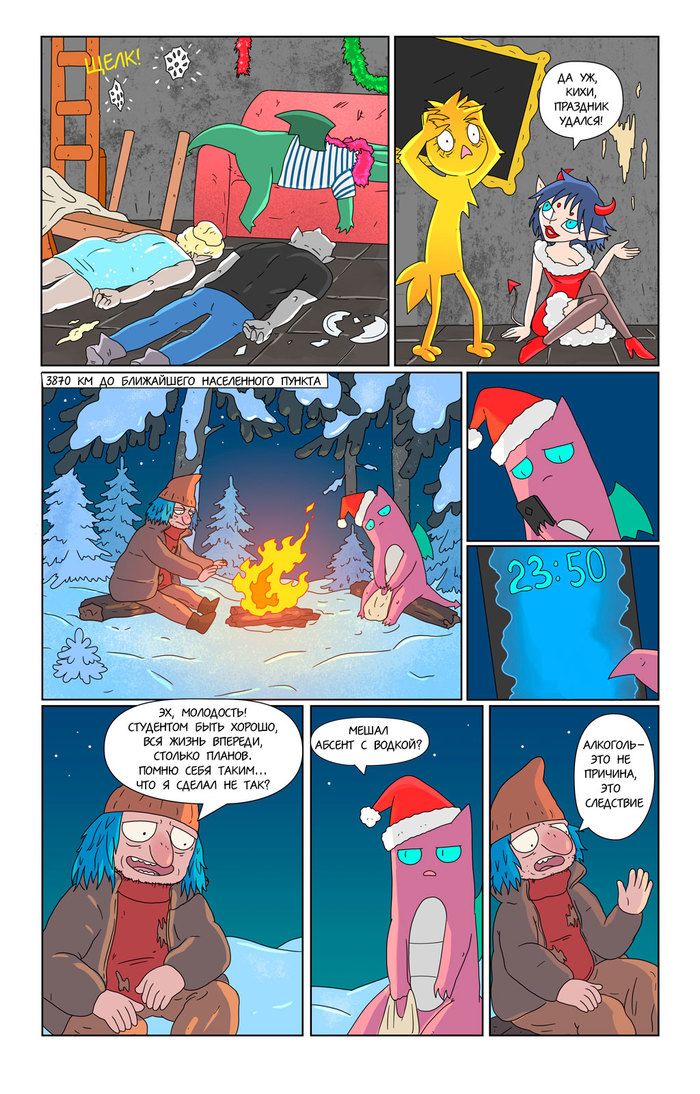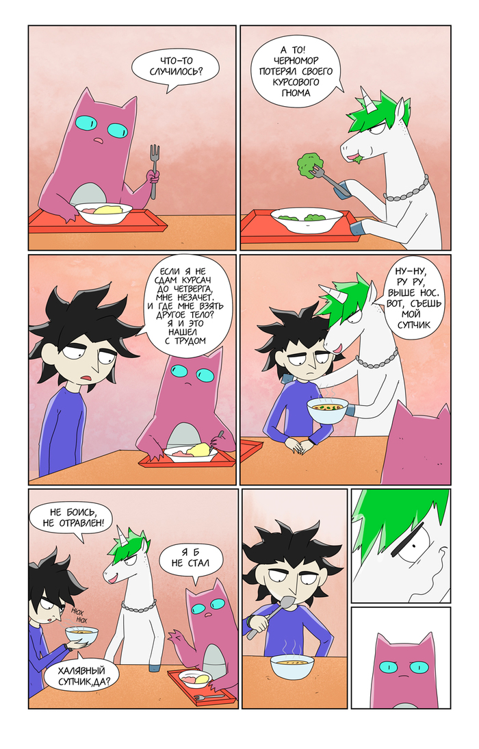 Как выяснилось на практике, рисование такого комикса крайне плохо сочетается с работой. Поэтому пока ухожу на перерыв, пополнять запас дошиков.