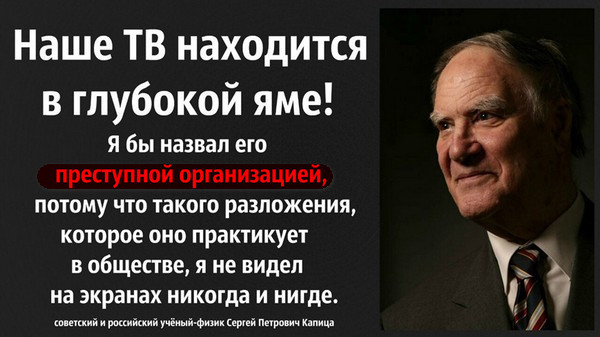 Как следствие, непрофессионализм участников передач, профанация. Скажем, вместо состязаний профессиональных фигуристов – шоу «Танцы со звёздами», или шоу с безграмотной и поверхностной Малышевой и «овощной» аудиторией вместо умной телепередачи о здоровье с ведущей-врачом Белянчиковой и приглашёнными врачами. Зритель привыкает к суррогату, к поверхностному восприятию темы, тупеет.