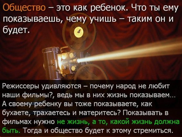 Советское телевидение содержало упомянутые пункты в минимальном количестве (за исключением темы алкоголя/табака), так как проводилась диаметрально противоположная идеология – Просвещения. Сегодня информационный фильтр человек выбирает себе сам. А чаще, ещё не осознав ситуации, в которой находится общество, выбирает, в какую гадость ему вляпаться более по душе. Не потому что человек плохой, а просто не знает или забыл о том, что нужен фильтр под названием «цензура», потому что государство от этой заботы (или обязанности?) самоустранилось. Но без этого фильтра общество нежизнеспособно, а значит, эту функцию гражданам придётся брать в свои руки.