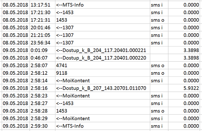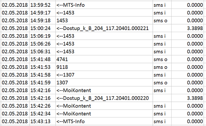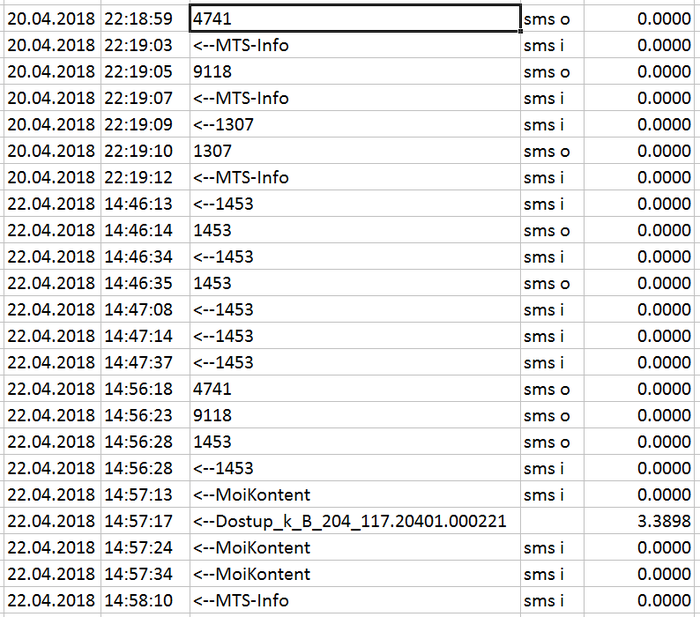 А ещё я вижу в детализации множество _отправленных_ сообщений на короткие номера, которые физически не могли отправляться.