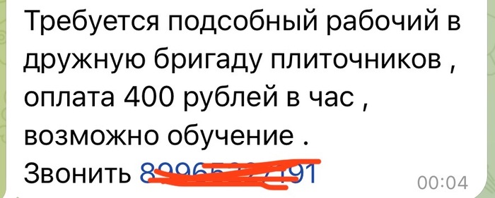 Переходим к более адекватным, начинающий плиточник с возможностью обучения, 72, мало, но уже на квартиру и хлеб с маслом будет