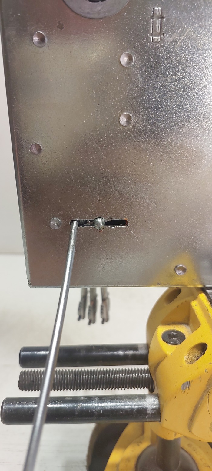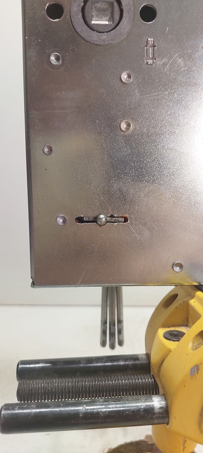 Стачиваем так что бы оно свободно и с люфтами проходило в половинку замочной скважины.