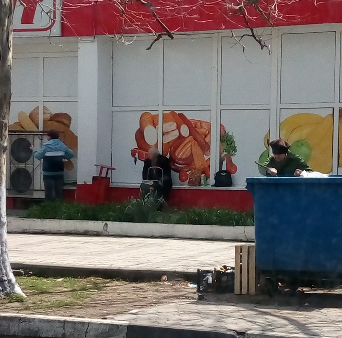 "Ну йомаё,это ж бл,звиздец",думаю я,ведь вроде как бабка не для себя гребла но в тоже время она не скрывала откуда фрукты,она показывала на контейнер и народ как бы и не парился,брал и кто то сразу открывал и ел, может боялись обидеть униженную старость,я х/з чем они все думают.