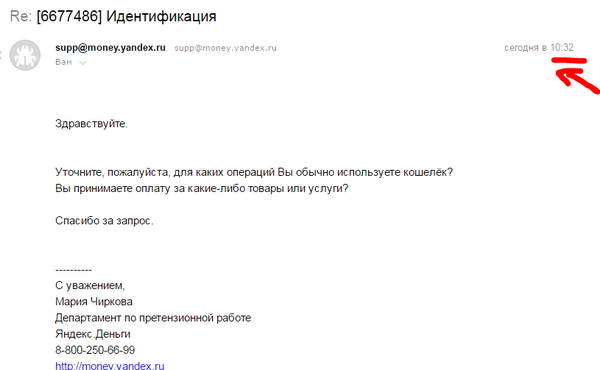письмо в 10:32 - "Уточните, пожалуйста, для каких операций Вы обычно используете кошелёк?...."