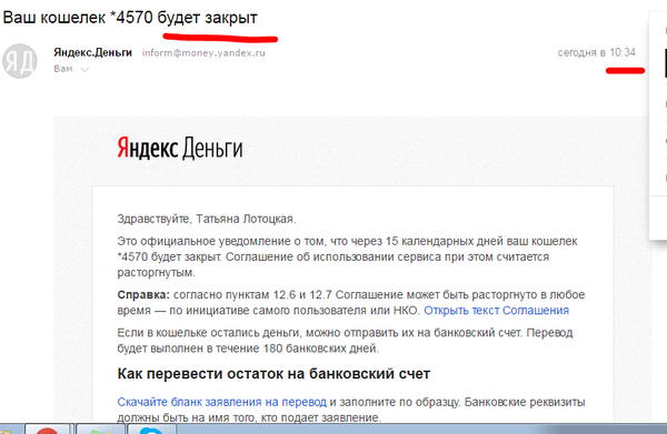 письмо в 10:34 (мало того что я спала и не прочитала, так я физически не успела бы проследить за тем чтоб вовремя ответить, я же не постоянно слежу за почтой) - ВАШ КОШЕЛЕК БУДЕТ ЗАКРЫТ