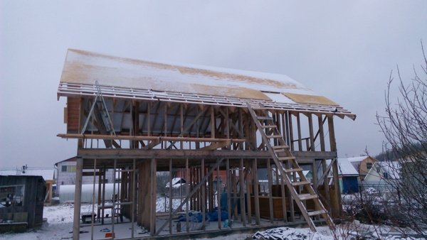 Продолжаю повествование про строительство каркасного дома собственными силами.