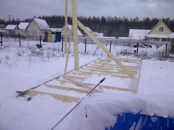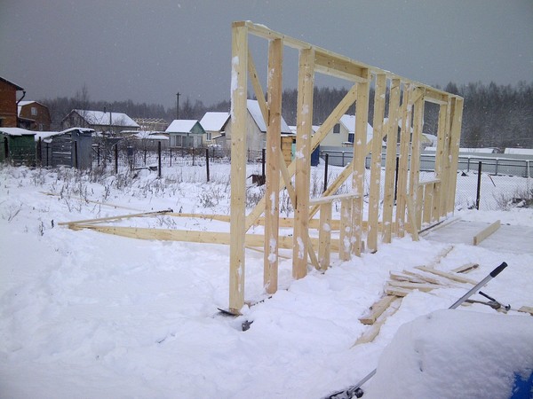 На этот раз опишу собственно возведение каркаса. Все делается собственными силами. То есть я сам с подсобной помощью жены и редким привлечением потусторонней силы.