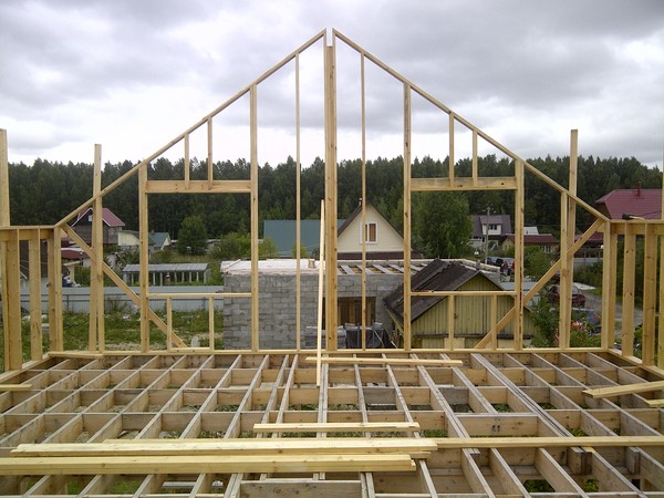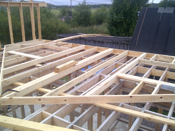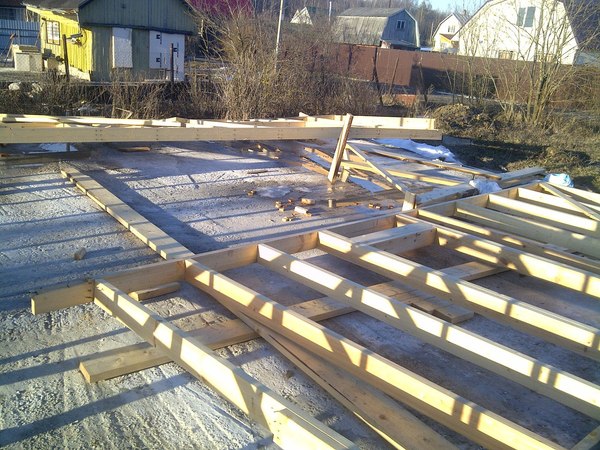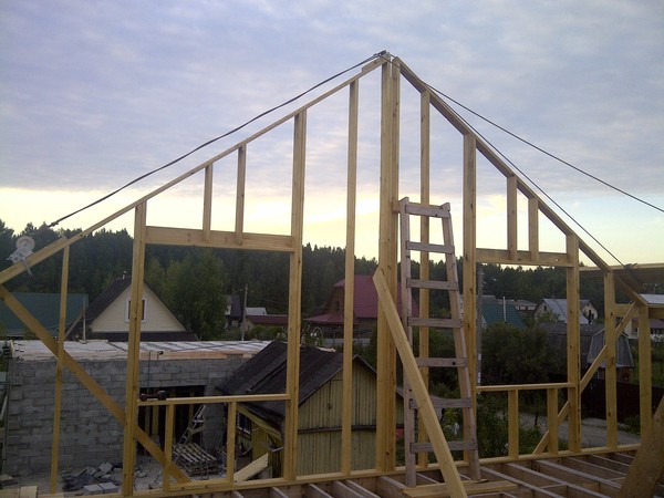 Торчащие в стороны доски - это упоры для крайних стропил.