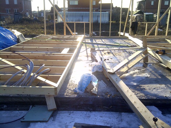 Каркас первого этажа готов, майские праздники подходят к концу. Надо делать перекрытие, но не тут то было.