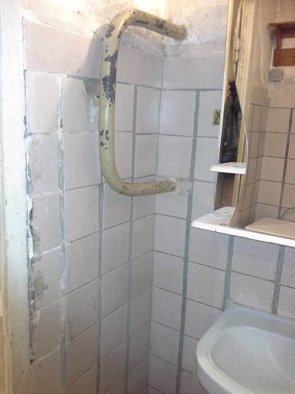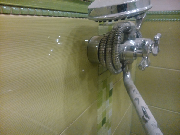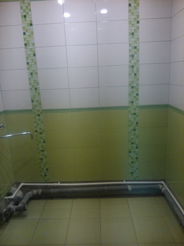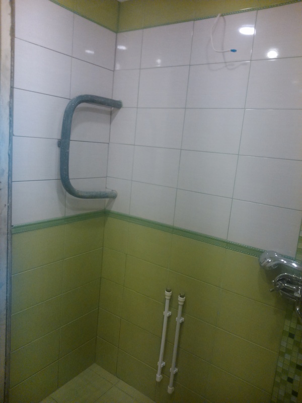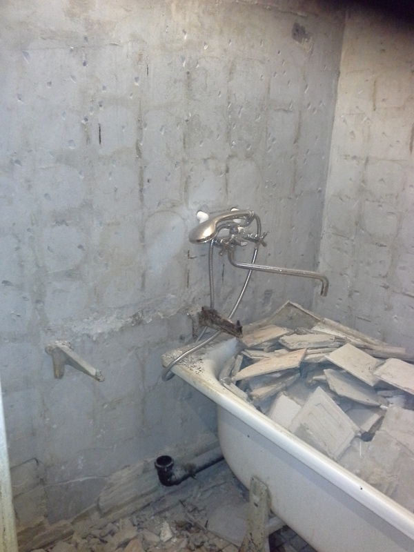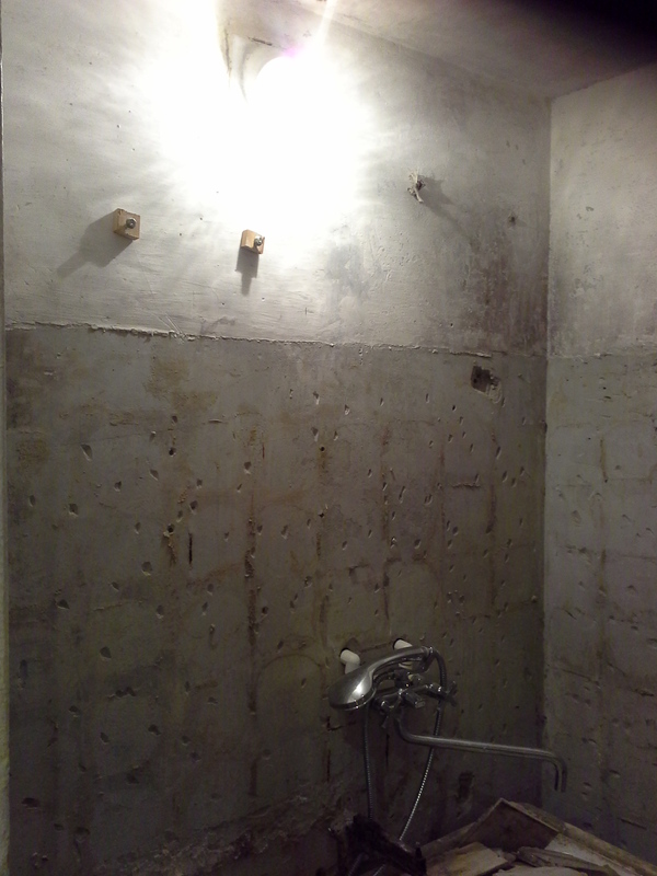 Плитка "держалась" на 3-х сантиметровом слое раствора и отходила от стен норовя завалить тебя во время приема душа. Местами между стеной и плиткой можно было просунуть ладонь.