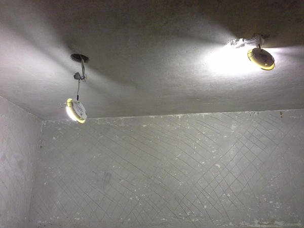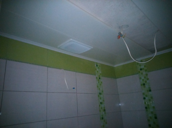 Освещение временно было протянуто под потолком поскольку наличие ниши в 15см над панельным боксом позволяло проложить провода над ним.