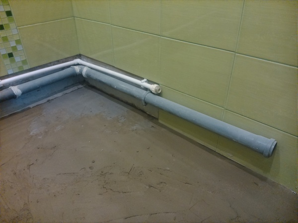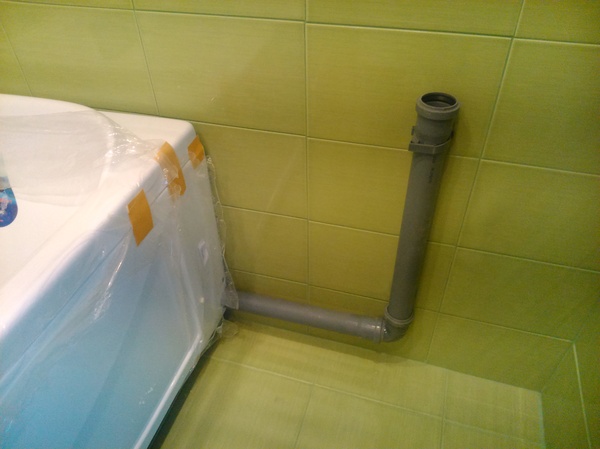 Для подключения стиральной машинки была протянута водопроводная труба, а так же труба канализации. (Негоже кидать слив от машинки в новую ванну.)