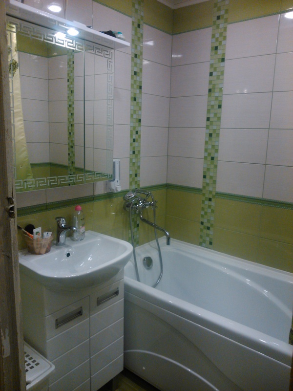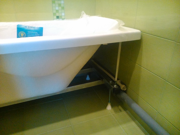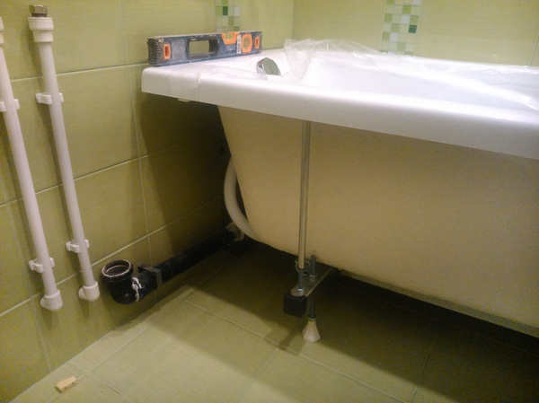 Ванну купили акриловую на каркасе 1,7м. Жена помогла вкорячить ее на место. В остальном все делал один.