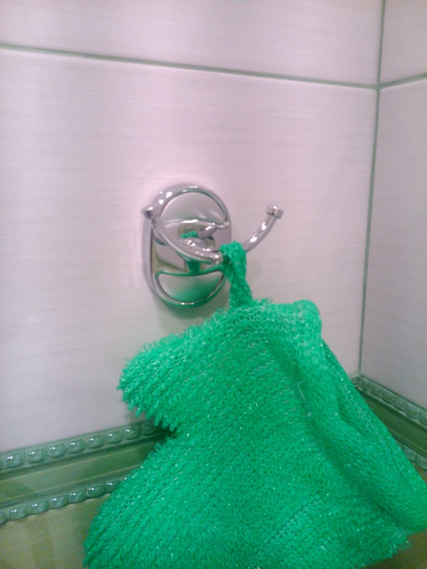 Крепим крючок для мочалок. осталось приобрести и установить держатель для душа.