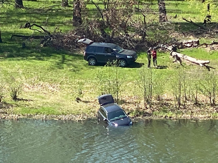 "Машину вытащили, оказалось, что сегодня утром девушка припарковала свой автомобиль слева от здания администрации Желнино . Оставленная без ручника машина Лада x-ray самостоятельно скатилась с горки прямо в Осовец."
