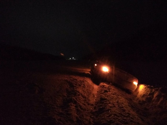 И вот спустя 3 часа мы влетаем в первый сугроб. Не очень глубоко, но встали капитально. Вытащил нас, почти сразу, мимо проежавший, заблудившийся мужичок.