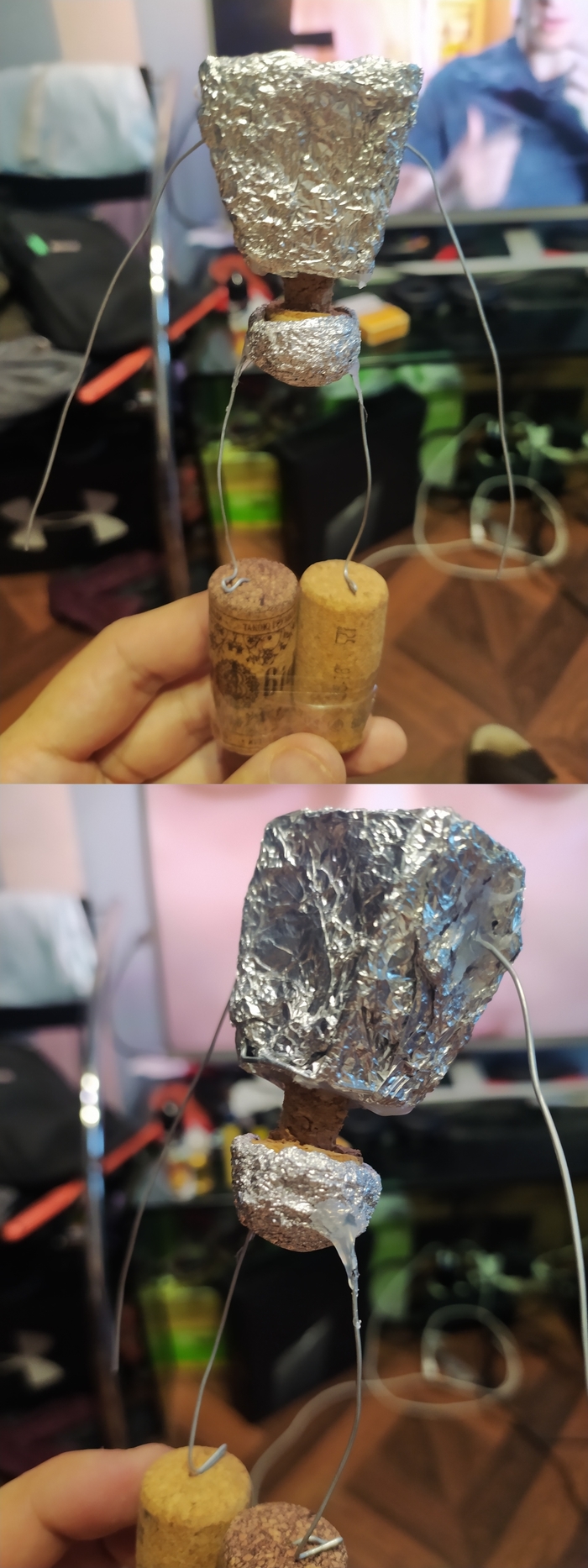 Затем показалась подставка уж слишком пустой. Придумал добавить - обломки Лапуты. (Пенопласт)