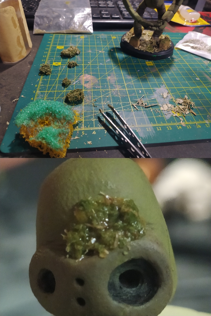 Из губки и всё тех же листьев имитировал мох и прочую растительность.