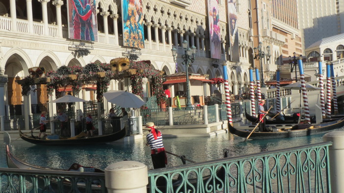 Мне кажется, что это самое красивое казино в Лас Вегасе (или все же Цезарь). Здесь все связано с далекой и прекрасной Венецией. Конечно, все не настолько романтично, но все же задумка дизайнера удалась. Кроме того, казино Венеция является одним из самым больших по размерам в Лас Вегасе. И тут плавают настоящие гандолы, а гандольеры поют песни, как в настоящей итальянской Венеции! Один был сильно темнокожий, а другой - вообще женщиной. Все толерантненько, по американски так... Пели, правда, хорошо, старательно.