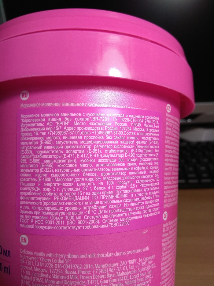 Мороженное скажу не из самых дешевых, за данную банку в гипермаркете Магнит я отдал 359 руб. Честно скажу, что не часто беру такое мороженное. Но радость от красивой упаковки было единственное что нас порадовало. Мороженное на вкус просто отвратительное, за 10 руб. стаканчик вкуснее намного. В мороженном явно чувствуются крупинки сухого молока, которые скрипят на зубах. Также чувствуются кусочки льда, которые есть не приятно. В этой массе присутствую и кусочки шоколада, но я так и не понял, то-ли он такой горький специально или все-таки что-то с ним не так, так как на упаковке было написано что молочный. Просто решил написать пост, так как такое Г не часто попадается мне. Увы не всегда дорогое бывает хорошим. Будьте внимательны при покупке.