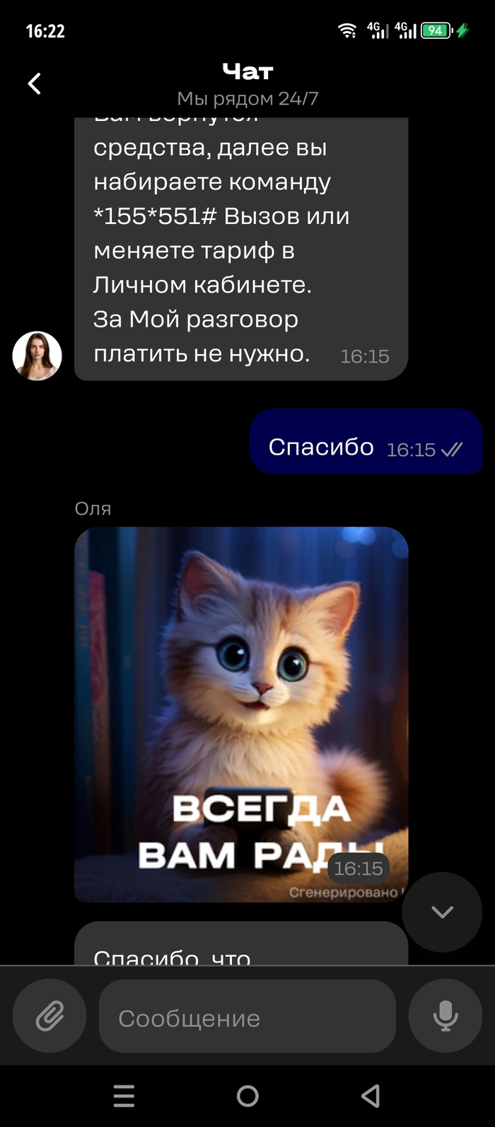 Домашний интернет - не подключен; Пакет на 200ГБ моб. интернета исчез. Хотя, как видно из скриншота оплаты - Билайн за домашний свои 105 рублей списал. И следующий платеж 25 февраля 2026 - уже 700 рублей, без интернета. Началась переписка с тех. поддержкой(долгая), дважды пришлось описать проблему. В итоге составили обращение и обещали, что мне позвонят на следующий день к 10.