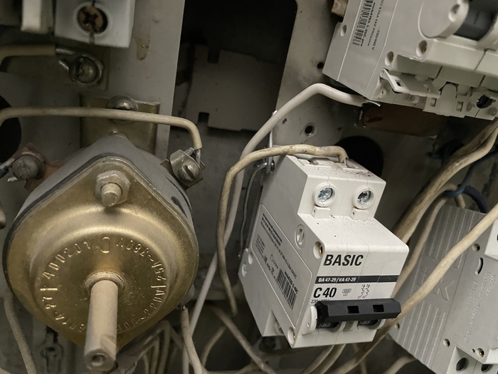 На данном фото изображен смонтированный (примотанный на проволочку) АВ на 40А при отходящем проводнике в 2,5мм2 (алюминий) рассчитанный на 20А.