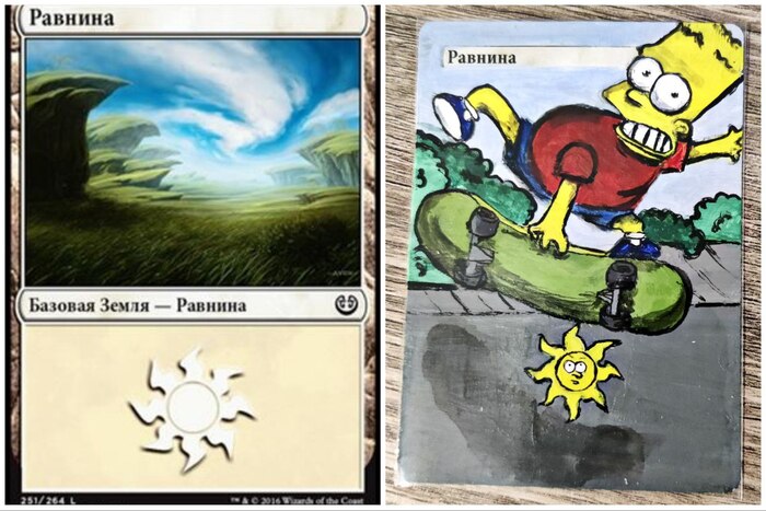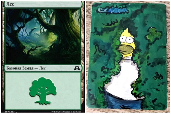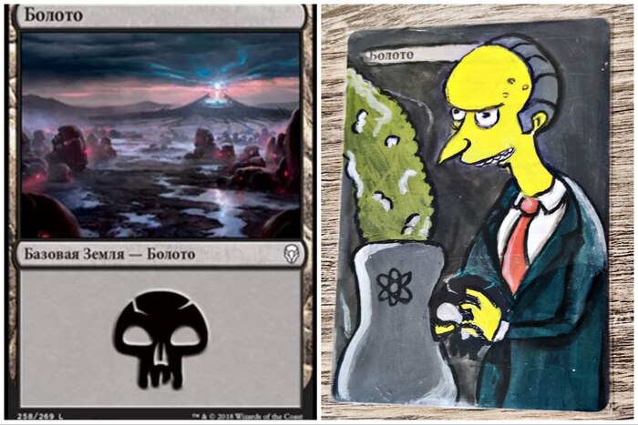 Играет у меня муж в Магию (Magic: The Gathering - сокращённо МТГ) а я порисовываю... У них модны сейчас так называемые АЛЬТЕРАЦИИ карт) т.е. Берешь карту и рисуешь на ней. На глобальных турнирах такое не покатит, но базовые земли или токены вполне играют в местечковых сборищах)