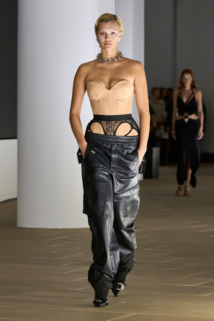 Mugler предстал перед зрителем в своей неповторимой манере сексуальности на грани безумия: вытянутые силуэты, глянцевый шик и животная страсть. Кейси Кэдуолладер всегда была известна своими оппозиционными общим трендам настроями, чем схожа, на мой взгляд, с Дениелом Розберри (Schiaparelli).