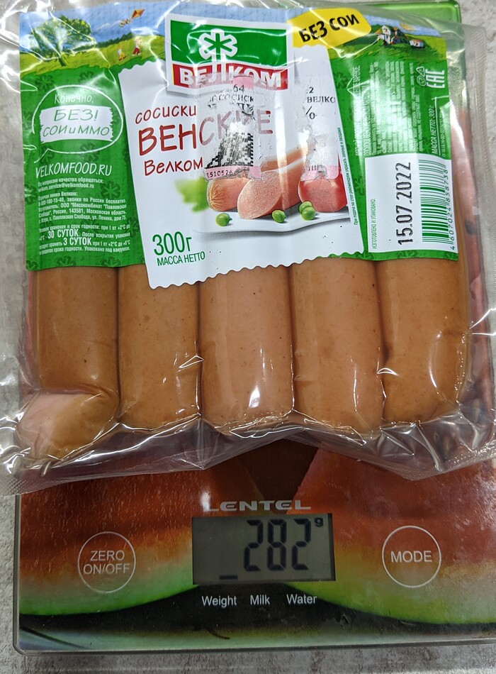Покупал продукты в метро несколько дней назад. И на кассе самообслуживания на эти сосиски касса начала ругаться на вес. Пришел сотрудник что то нажал и ушел. А я дома для интереса проверил вес и это с упаковкой.