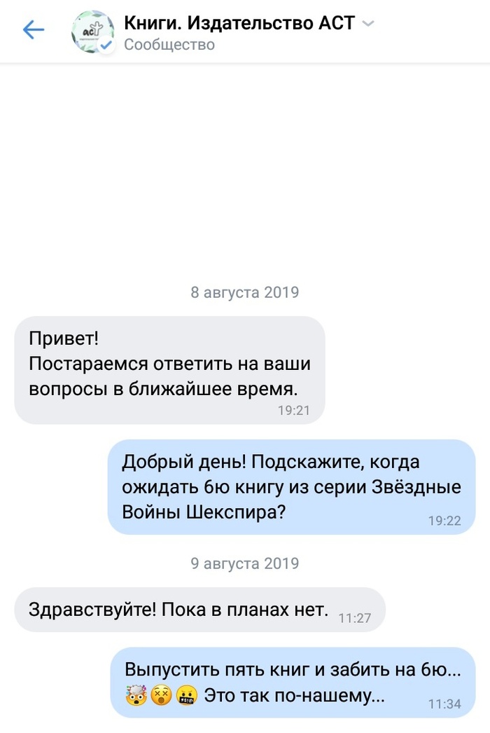 Случай №3 "Звездные Войны Уильяма Шекспира" Яна Дошера - издательство АСТ не выпустило "Возвращение джедая"