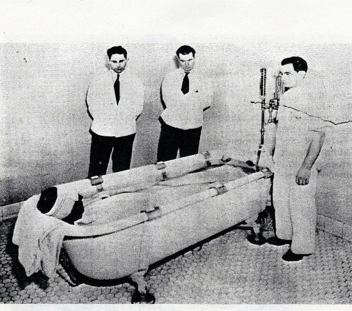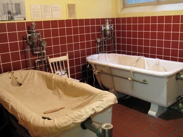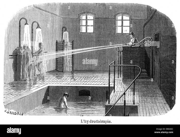 Вода бесплатная, воды много. Психически больных тоже много, ведь наверняка она должна на как-то положительно на них влиять. В разные периоды пробовали обдавать водой под напором, длительно капать на голову, окунать в ледяную воду, заставлять днями лежать в ванной с водой. До середины прошлого века метод использовался очень широко, в основном уже в виде длительного приема ванн для успокоения.