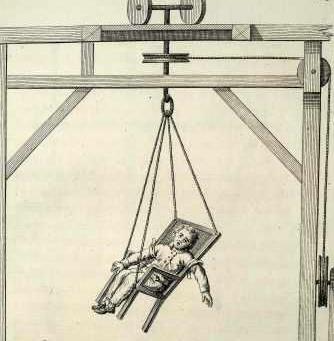 В 1780е в Великобритании одному ученому пришла такая идея - если сильно раскручивать человека, кровообращение в голове изменится и возможно это как-то повлияет на его психику. Он придумал стул, подвешенный на ремнях или закрепленный на оси, который можно было быстро раскрутить. Возможно он просто опередил время и его призванием была космическая отрасль. Человека плотно фиксировали, считалось, что это помогает при мании, агрессии и прочем безумии. В некоторых учреждениях использовали радикальный подход и стул раскручивали до 100-120 оборотов в минуту, сеанс мог длится до 10 минут. Крутили пациентов довольно долго, вплоть до 1850х, когда все-таки признали, что пациенты чаще ухудшались в результате процедуры.