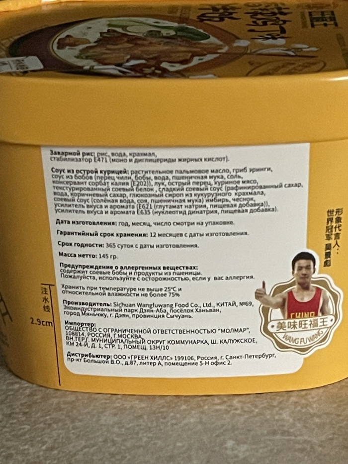Внутренности коробочки не покажу, там всего два пакетика (рис и соус). Но вот что бесит, так это черточка наполнения снаружи банки.